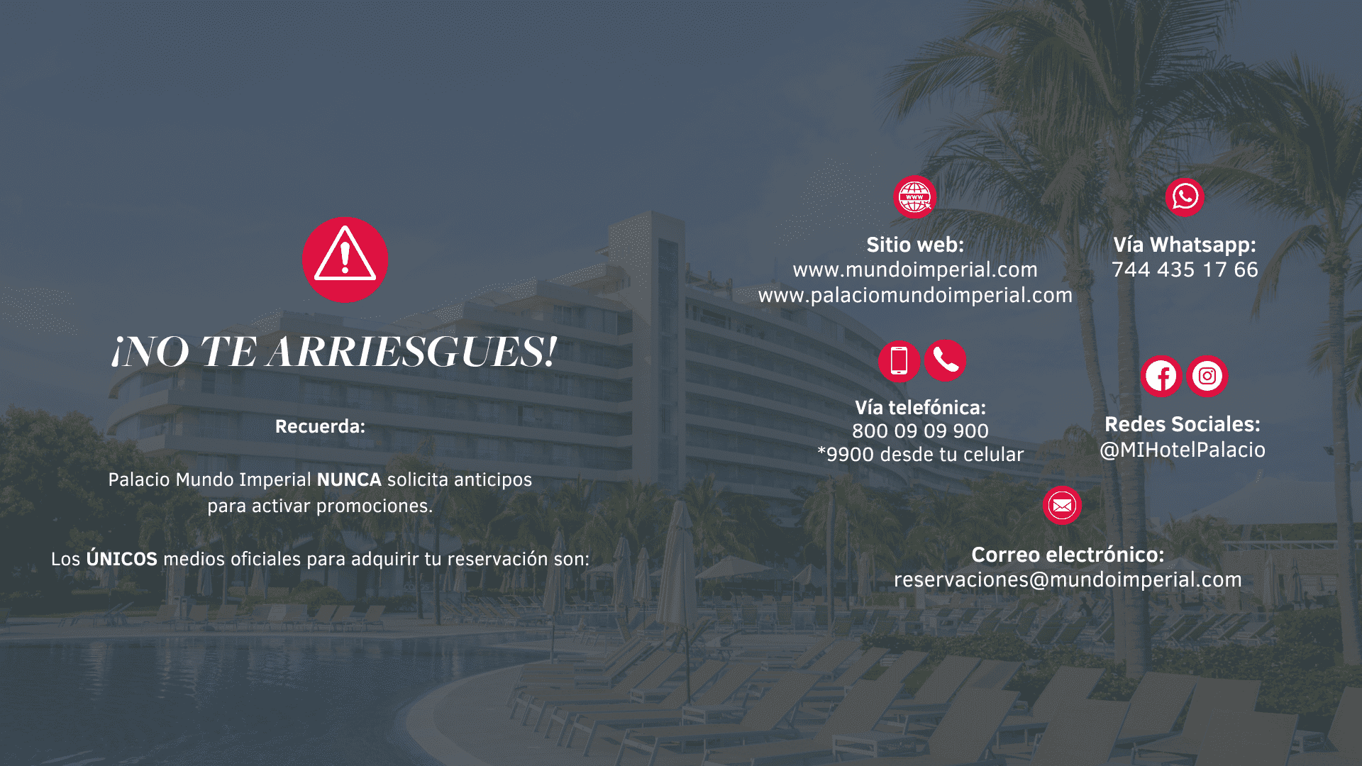 Extraordinary in every detail, Palacio Mundo Imperial is a resort that transports you to another world. Let us surprise you on your next visit to Acapulco.