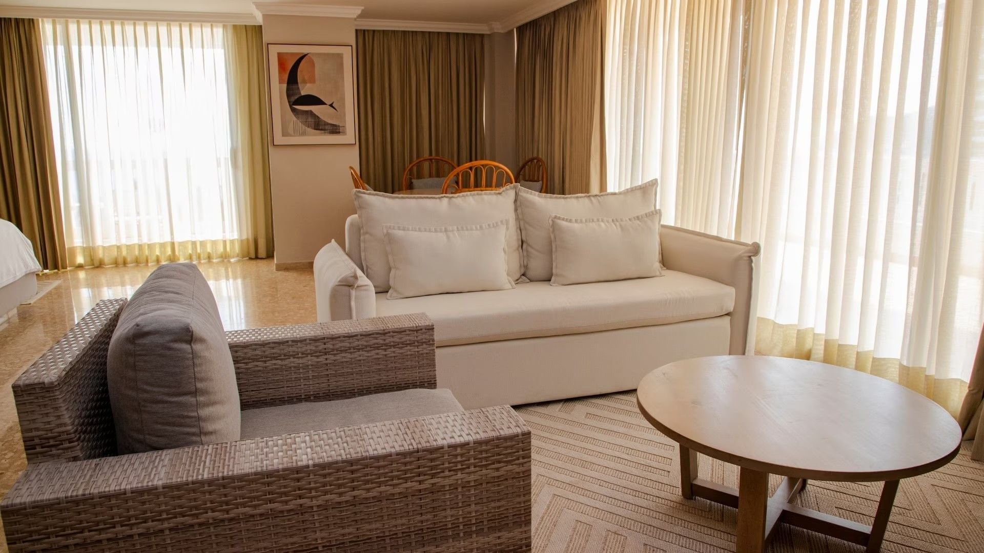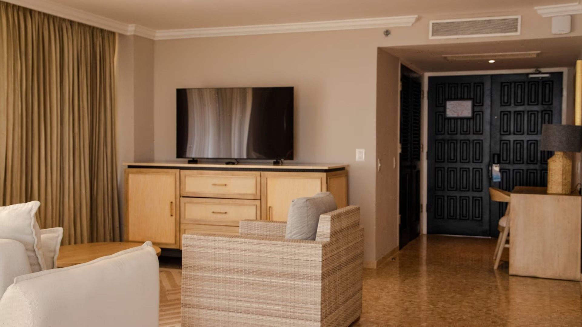 Our 517-square-foot Junior Suites combine elegance and comfort, with a separate living room, enlarged bathroom and private terrace. Enjoy views of the Princess golf course or tropical gardens. These suites offer exclusive amenities such as bathrobes, slippers and high quality bath products, ensuring a relaxing and luxurious stay. A perfect space for those seeking comfort and sophistication in every detail.