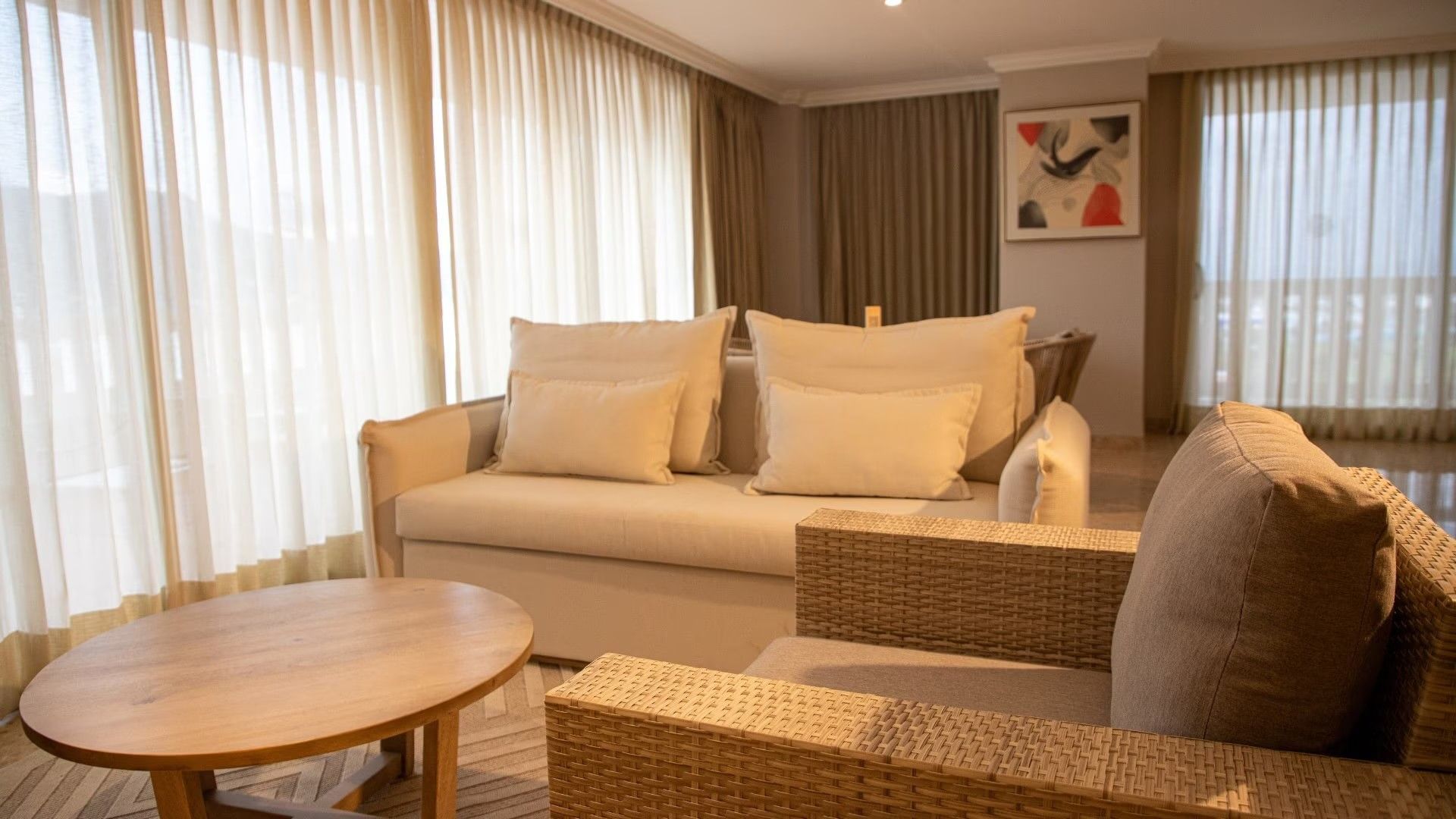 These corner suites offer the best view from the Perla Tower and are styled in a contemporary atmosphere that reflects the warmth and colours of Mexico. Relax in the salon, enjoy a meal in the dining room and soak in the spectacular golf course and ocean views from the terrace or private balcony