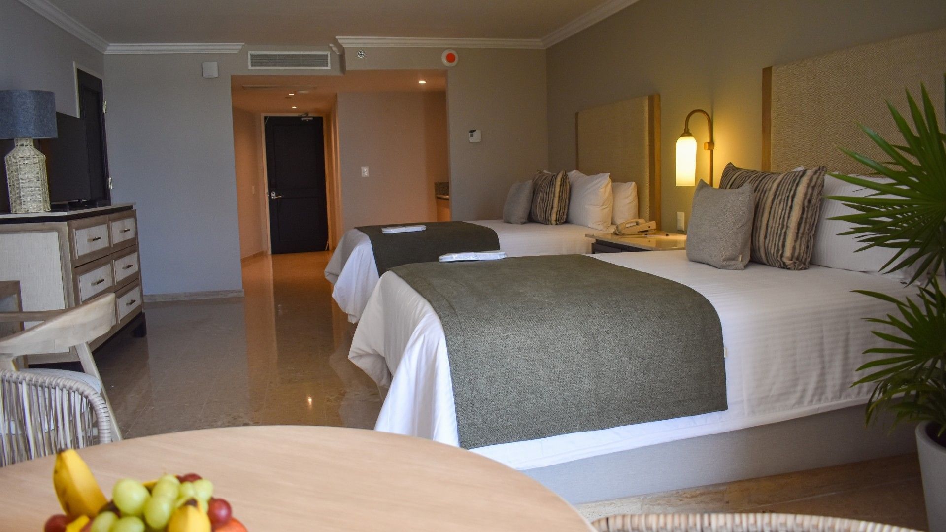 Experience elegance and comfort at the Princesa One Bedroom Apartment Golf View. Perfect for families or groups, these suites offer extra space, including a private balcony, a larger living area and a fully equipped kitchen with induction grill, microwave, minibar and sink. Accommodating up to 4 people (in double beds) and space for a crib or extra bed, it is the ideal retreat overlooking the Princess golf course or tropical gardens.