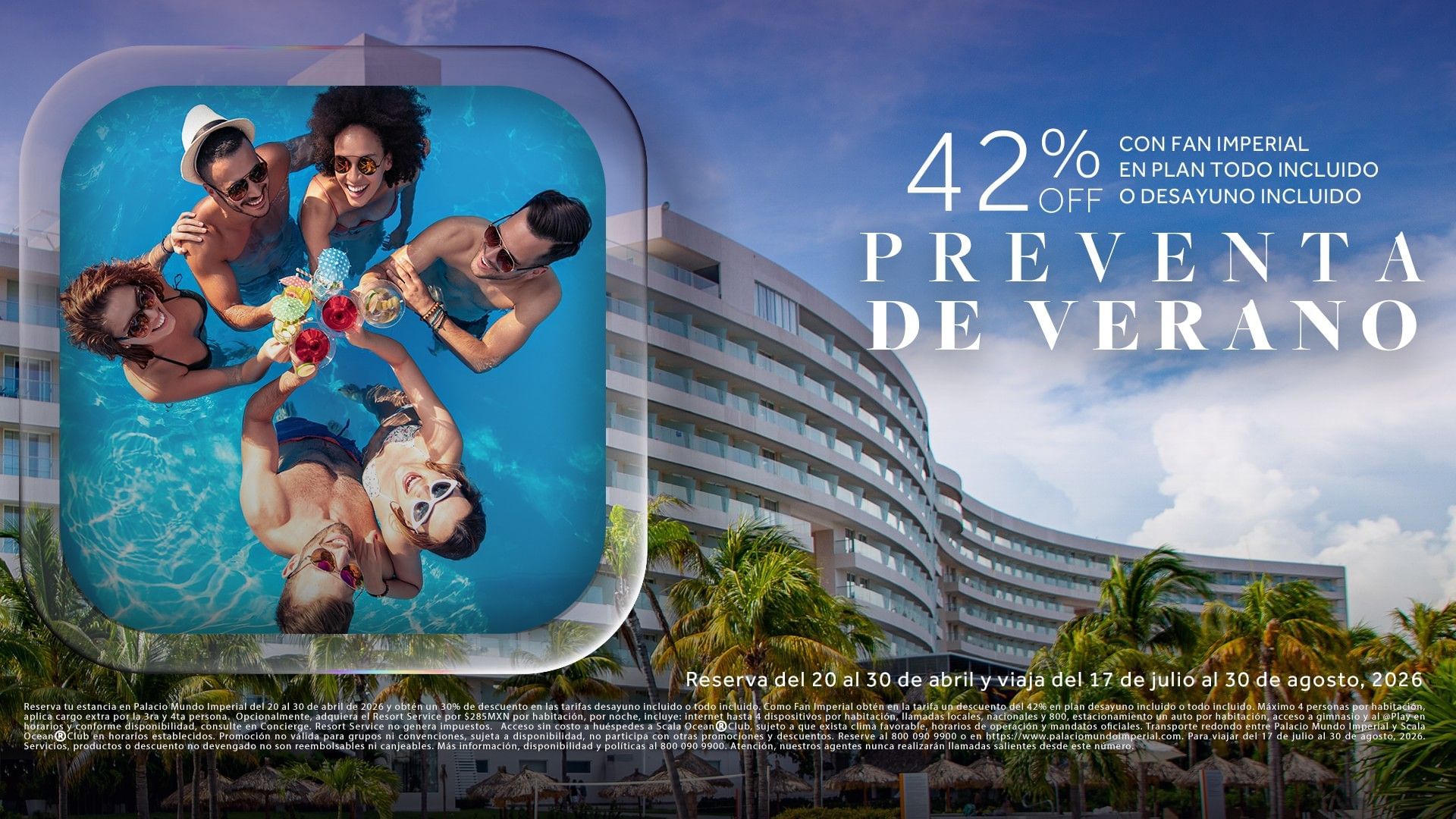 Palacio Mundo Imperial te invita a descubrir un mundo de innovación, sorpresas y posibilidades infinitas en Riviera Diamante Acapulco. Disfruta de la experiencia relajante de Elan Spa, deleita tu paladar con gastronomía exclusiva, sumérgete en tiendas de lujo y disfruta del encanto del Promenade. Relájate en nuestras refrescantes albercas o vive momentos inolvidables en Scala Ocean Club. Un oasis turístico que te cautivará y del que no querrás irte.