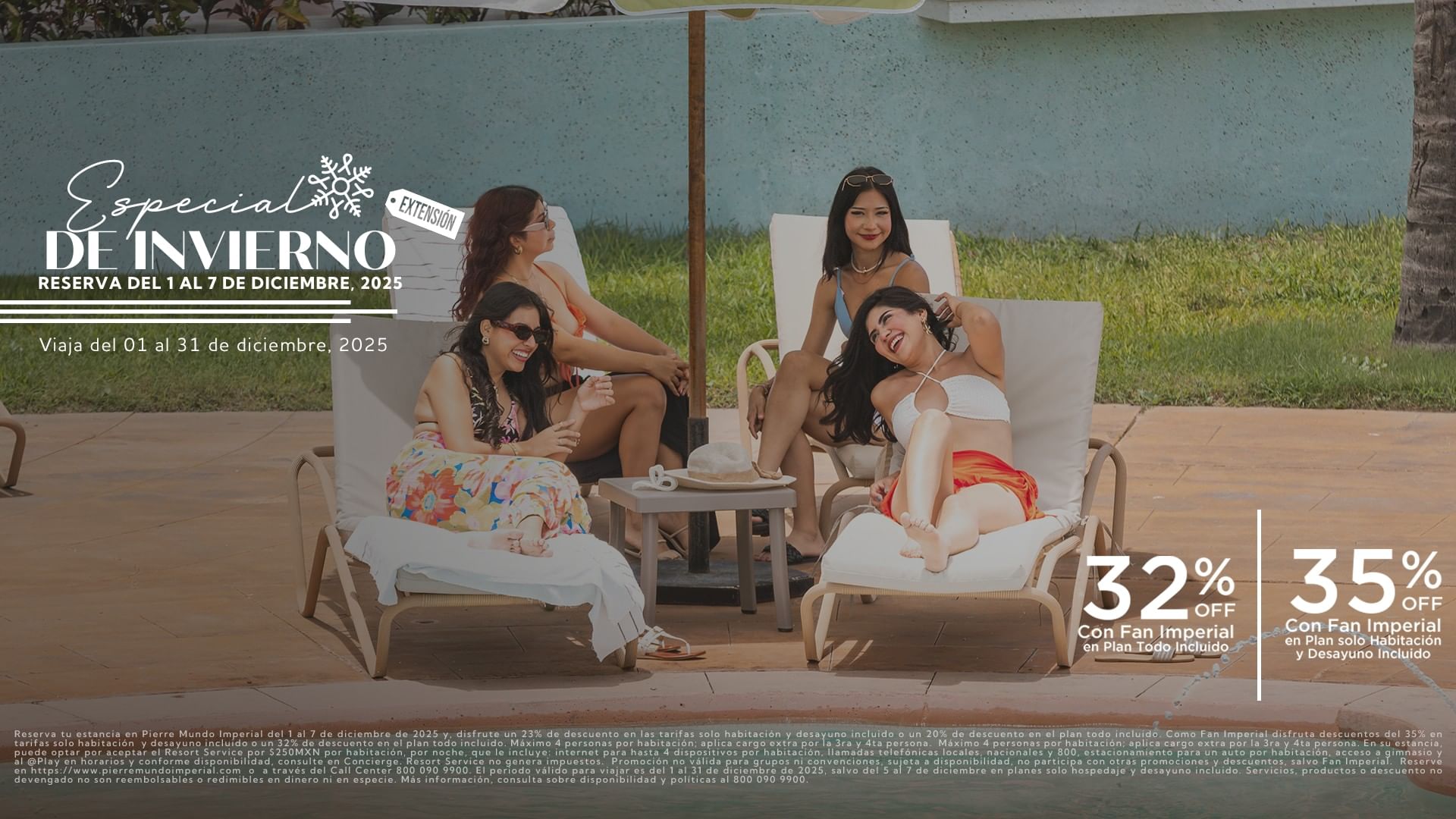Extensión Especial de Invierno: últimos días para reservar en Pierre Mundo Imperial y obtener hasta 35% de descuento y beneficios exclusivos.