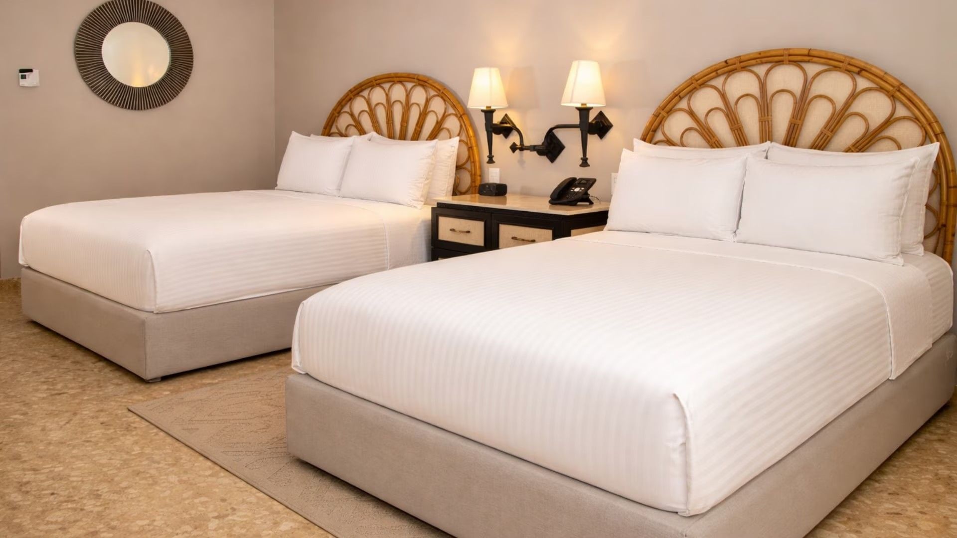Situadas en las dos primeras plantas de Platinum, estas habitaciones ofrecen las mejores vistas del campo de golf. Su diseño exclusivo presenta un ambiente mexicano contemporáneo con acentos de lujo. 485 pies cuadrados, balcón privado y dos camas dobles.