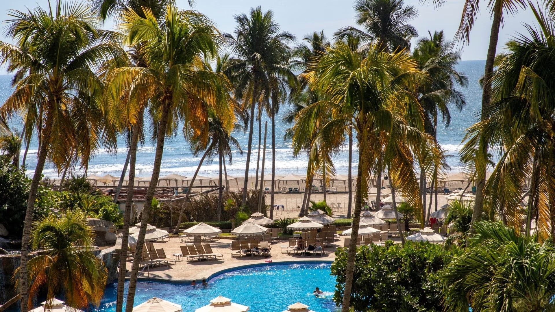 Relájate en nuestras Habitaciones De Lujo Vista al Mar, con decoración tropical, balcón privado, pisos de mármol y vistas parciales al océano y albercas. Ideales para hasta 4 personas, con opción de cama extra o cuna.