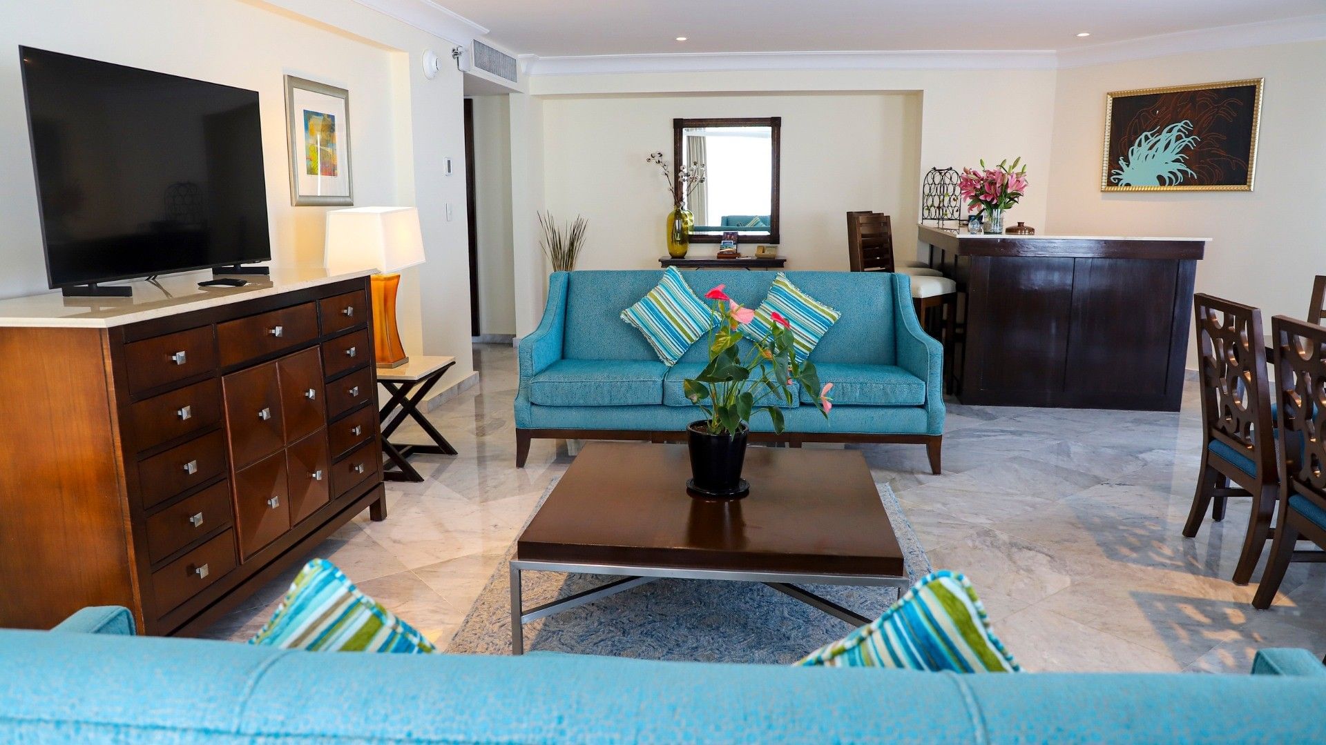 Las Junior Suites de 517 pies cuadrados ofrecen un diseño elegante y cómodo, con sala de estar, baño grande y terraza. Ubicadas frente al campo de golf Princess, incluyen comodidades especiales como batas de baño, pantuflas y productos de baño.